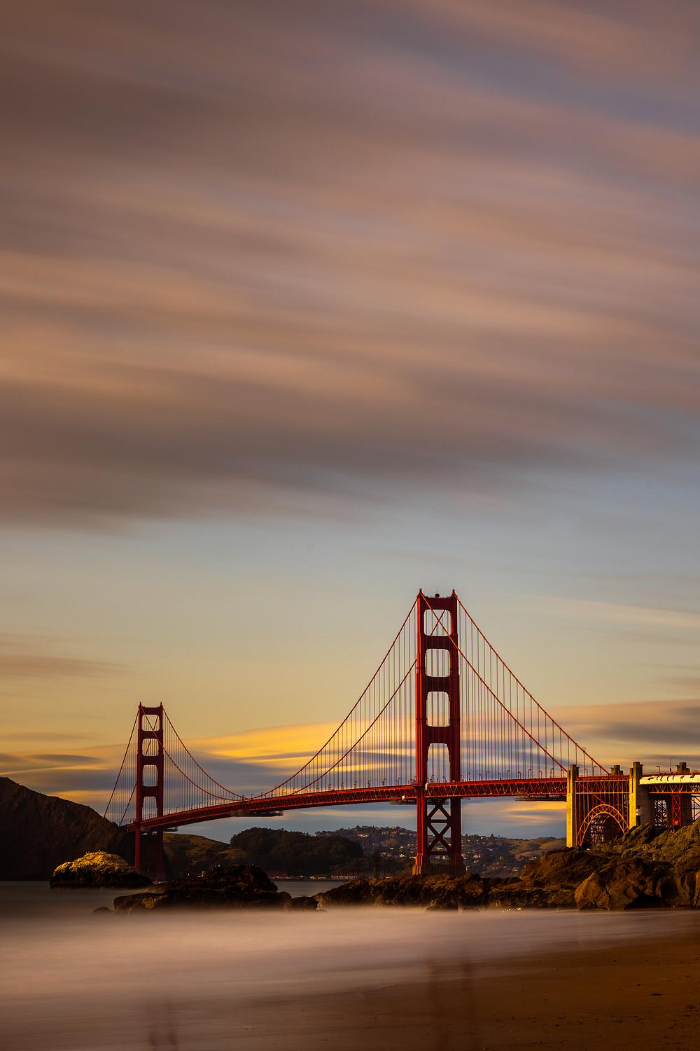 Golden Gate Bridge seen from Baker Beach, San Francisco, California, USA. 3 min. exposure.